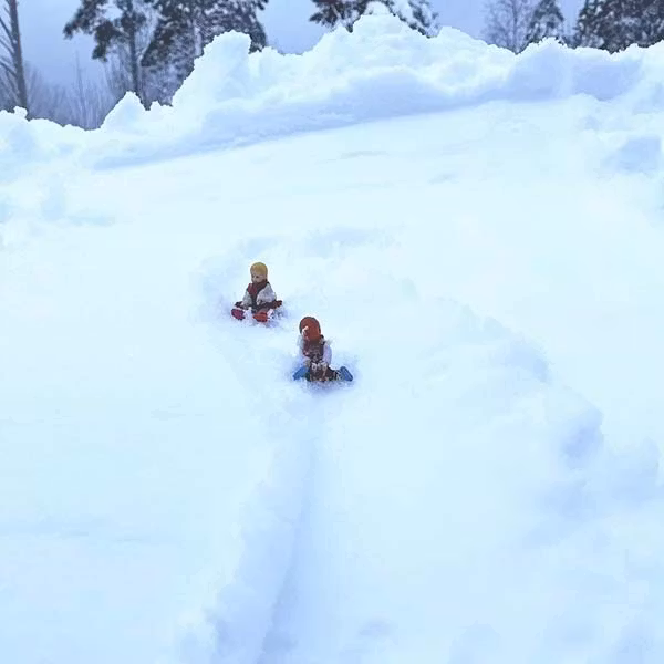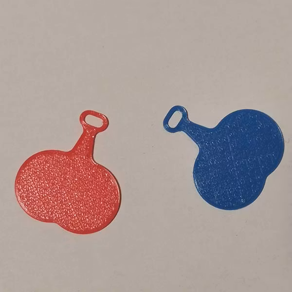 Stjärtlappar för lek i snön 2 stycken 1 röd och 1 blå