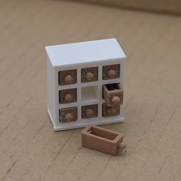 ApoteksReda vit botten och ljusbruna lådor 1:18