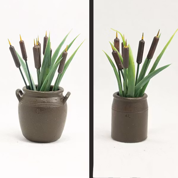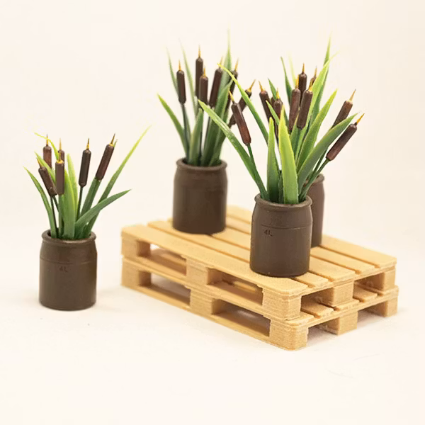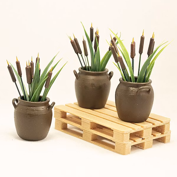 Krus och kaveldun utskrivna i resin och sedan handmålade