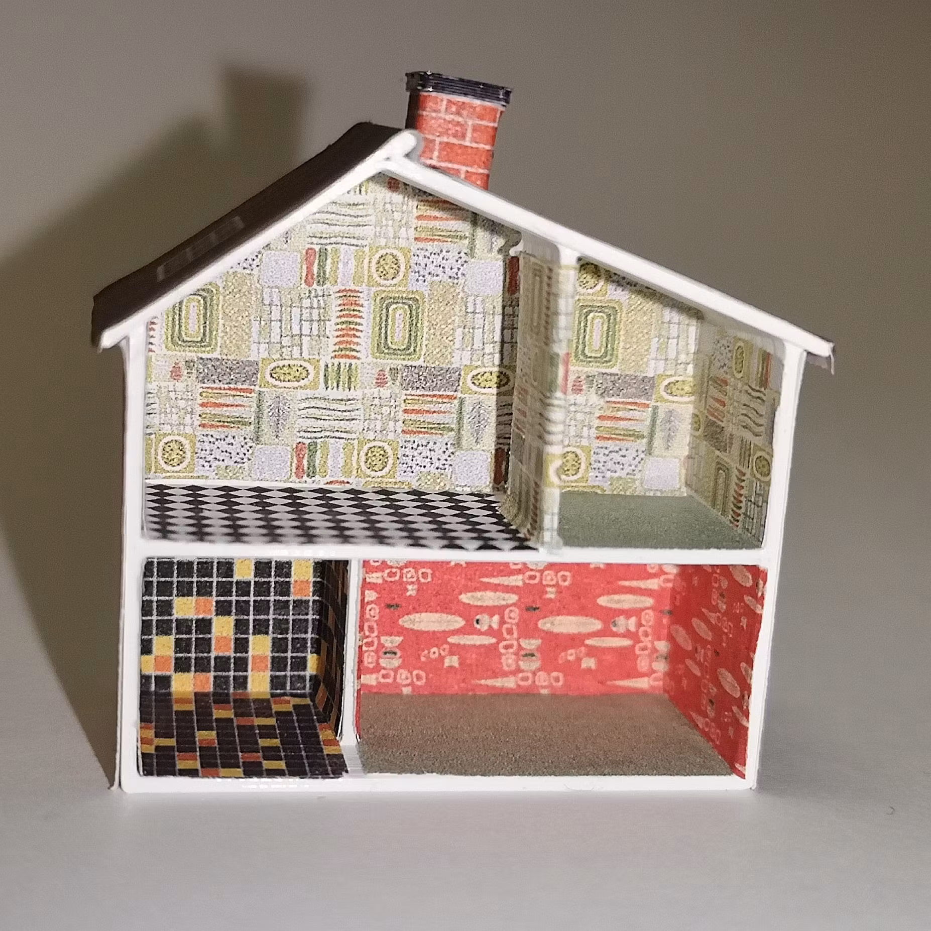 På bild 2 kan Ni se hur jag tapetserat mitt dockskåp