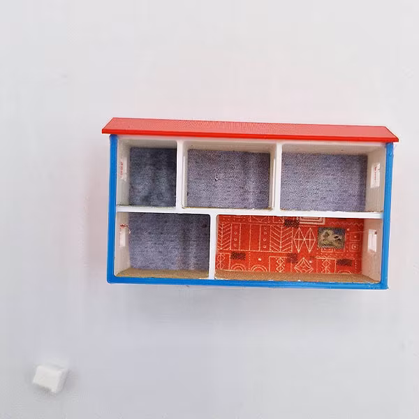 Mini Dockskåp låda med blå list röd tapet 1:18